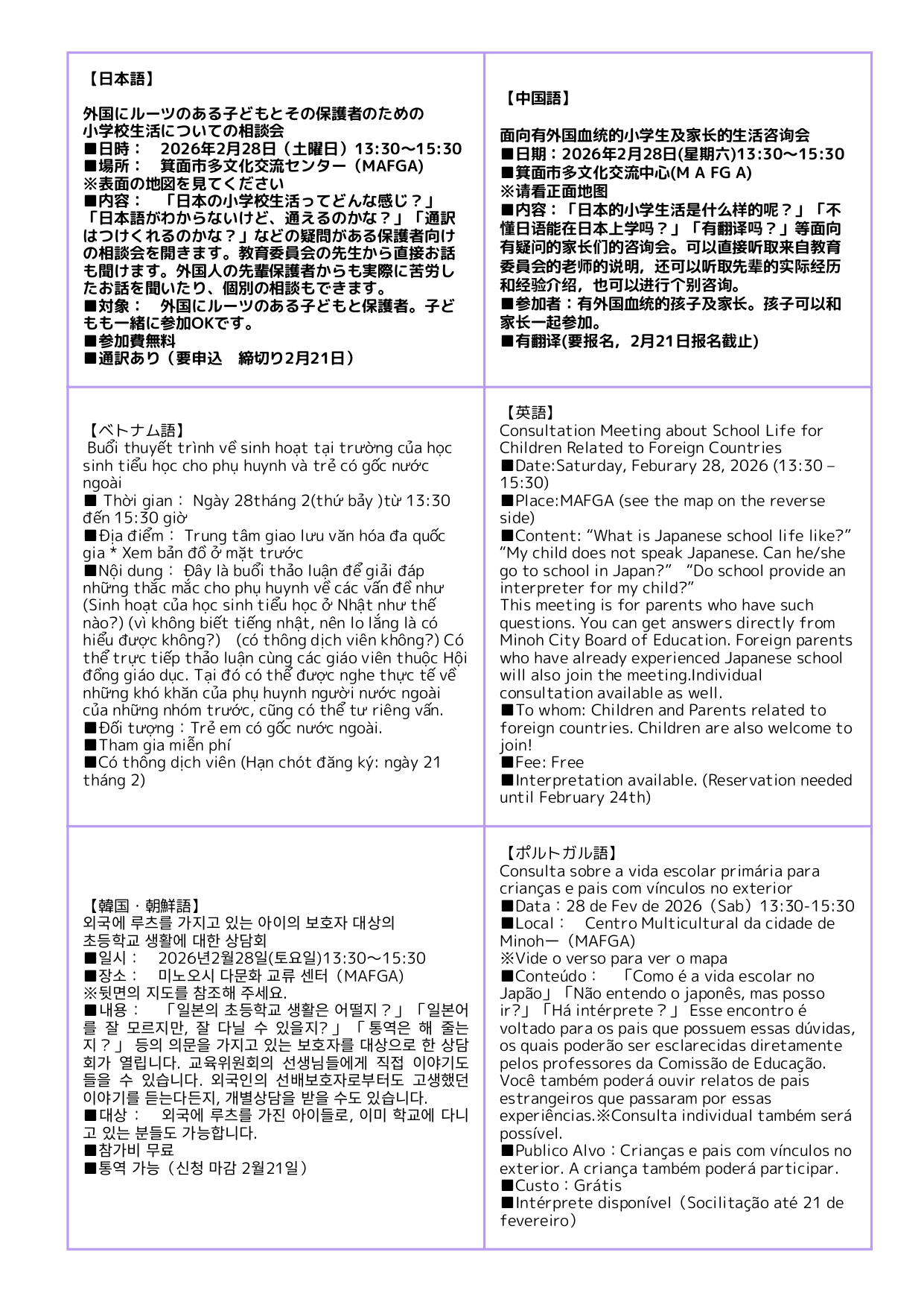Consultation on Elementary School Life for Children with Foreign Roots and Their Parents